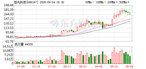 炬光科技9月24日大宗交易平台出现一笔成交,成交量2.41万股,成交金额400.45万元,大宗交易成交价为166.16元,相对今日收盘价折价2.00%。该笔交易的买方营业部为银泰证券有限责任公司西安友谊西路证券营业部,卖方营业部为中信建投证券股份有限公司西安科技路证券营业部。