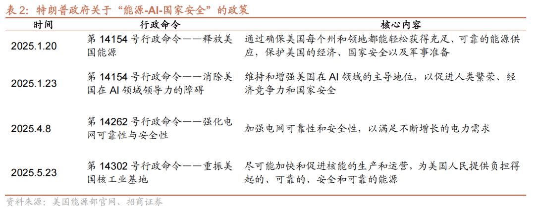 “能源-AI-国家安全”一盘棋之下、加强大型电力基础设施建设非常紧迫。电力加速计划是一项联邦行动,符合特朗普政府推出的多项政策方针,旨在加快大型电网基础设施项目开发速度,以确保美国拥有赢得全球AI竞赛所需的电力,同时提升电网的经济性和可靠性。美国能源部明确提出,将优先支持能满足3~20GW增量负荷的大型项目,包括跨区域输电工程(至少1000MVA)、对现有线路进行换线改造(至少500MVA)、退役电站改造重启以及新建发电集群等。