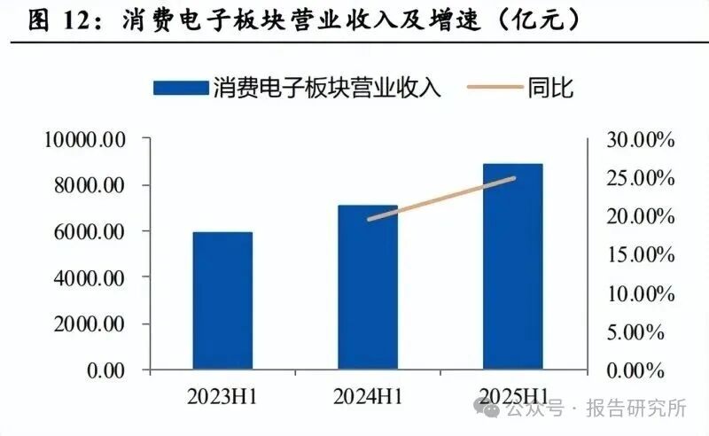 主要标的情况:从主要标的情况来看,剔除 ST 股个股,2025H1 消费电子板块营业 收入增幅排名前二十的个股为华勤技术、易天股份、利通电子、海能实业、影石创新、硕贝德、光大同创、捷荣技术、精研科技、绿联科技、雅葆轩、英力股份、星星科技(维权)、协创数据、工业富联、安克创新、惠威科技、恒铭达、万祥科技、胜蓝股份。2025 年上 半年,上述消费电子公司营业收入显著增长,主要驱动力可归结于人工智能技术革命带 动的硬件升级、消费电子市场的整体复苏以及品牌出海的强劲表现。