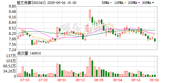慈文传媒:截至9月19日收盘,公司股票持有人总数为53484户