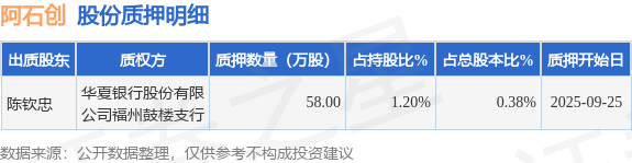 证券之星消息,阿石创(300706)9月26日公开信息显示,股东陈钦忠向华夏银行股份有限公司福州鼓楼支行合计质押58.0万股,占总股本0.38%。质押详情见下表: