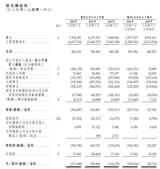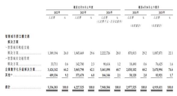 招股书显示,在过去的2022年、2023年、2024年和2025年前六个月,佳都科技的营业收入分别为人民币53.36亿、62.28亿、79.49亿和49.19亿元,相应的净利润分别为人民币-2.71亿、3.95亿、-1.18亿和1.36亿元。
