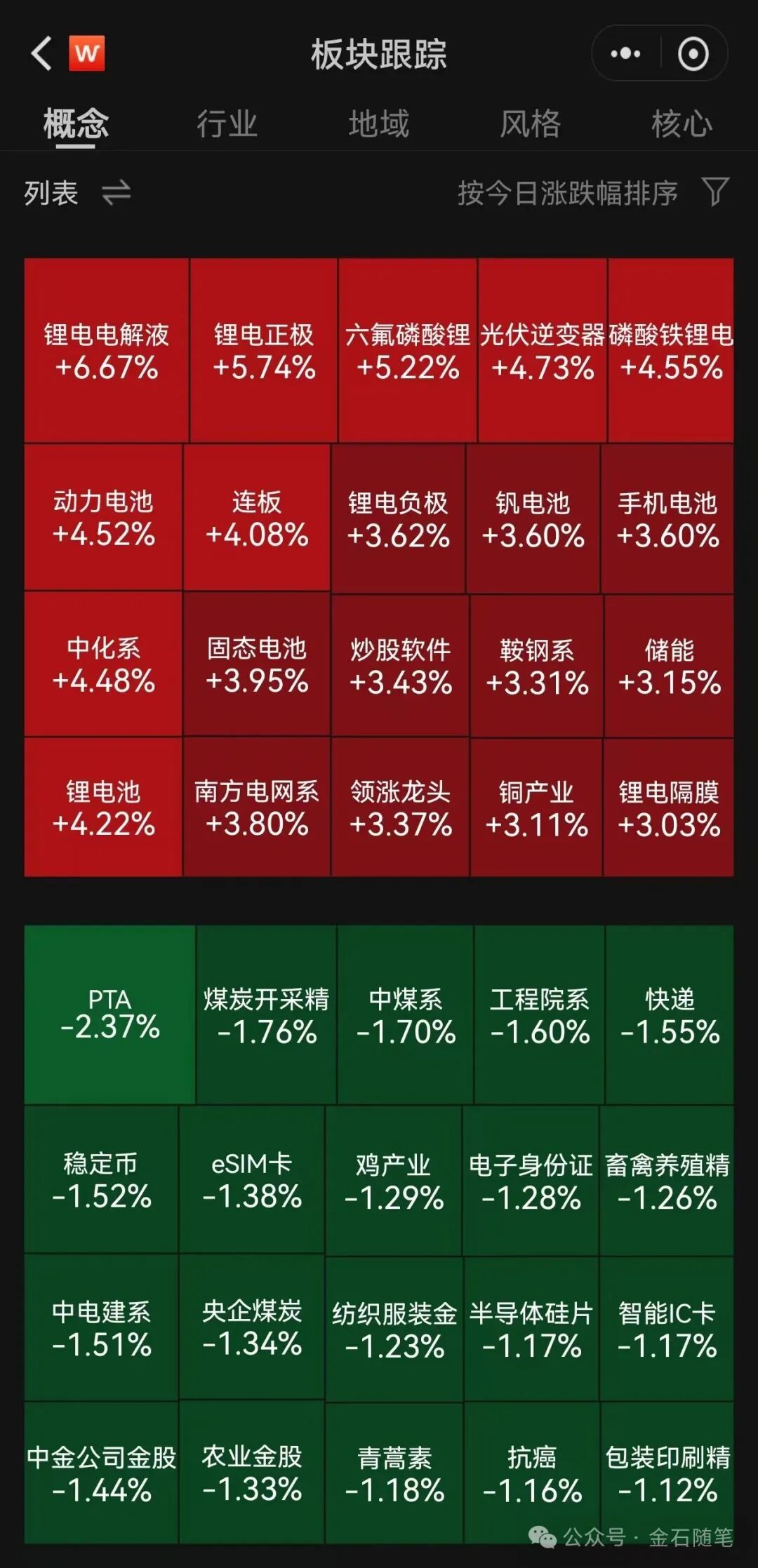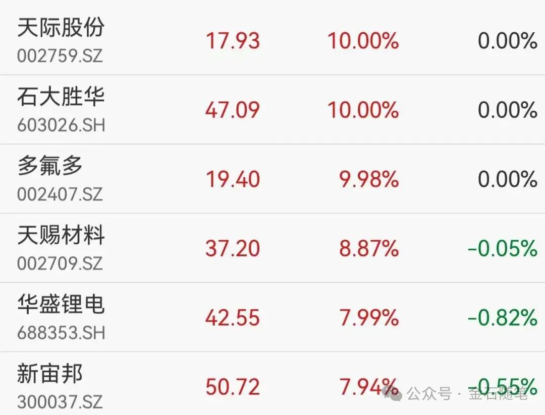 所以,大家看到,今日电解液、六氟磷酸锂等涨幅居前。