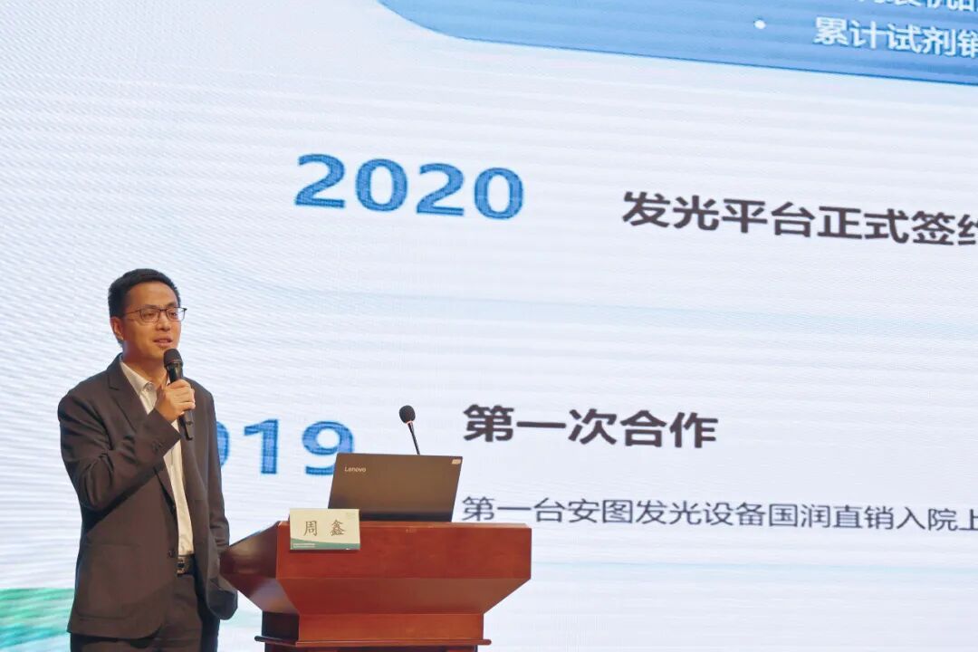国药控股国润医疗上海公司总监,国药控股国润医疗安徽公司支部书记、董事长周鑫作为优秀合作伙伴代表,分享了与安图生物的合作经验,从流水线产品优势、市场实践到协同攻坚的具体案例,展现了双方在战略协同与价值共创上的显著成果。