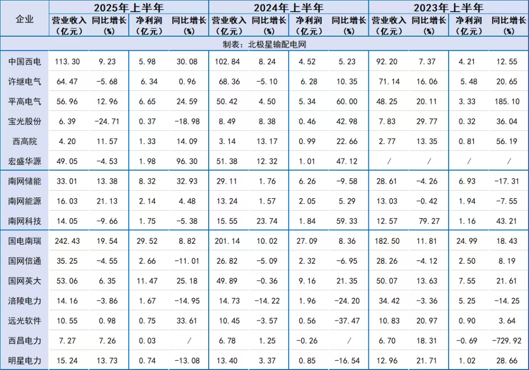 同时,2025上半年,有10家企业实现营收同比增长,其中国电南瑞实现营收29.52亿元,同比增长8.82%。
