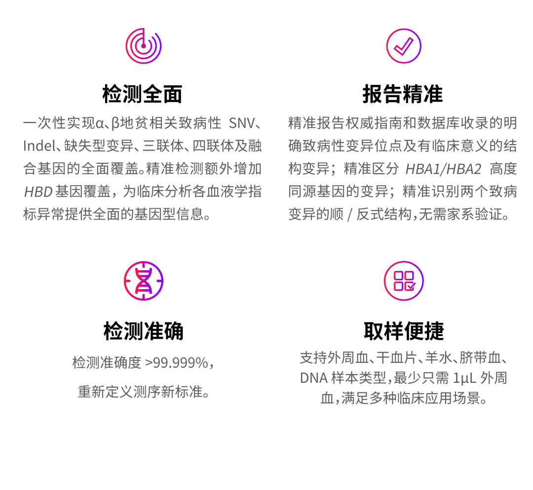 与“金标准”方法对比,三代地贫检测准确度为100%。