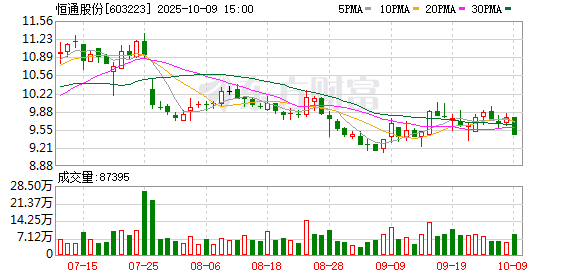证券时报·数据宝统计,截至发稿,恒通股份收盘价为9.44元,下跌3.38%,本期筹码集中以来股价累计下跌3.18%。具体到各交易日,4次上涨,4次下跌。