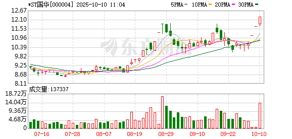 *ST国华盘中涨停,已连收3个涨停板,截至10:31,该股报12.26元,换手率10.52%,成交量1328.95万股,成交金额1.60亿元,涨停板封单金额为1993.97万元。连续涨停期间,该股累计上涨15.77%,累计换手率为12.02%。最新A股总市值达16.23亿元,A股流通市值15.48亿元。