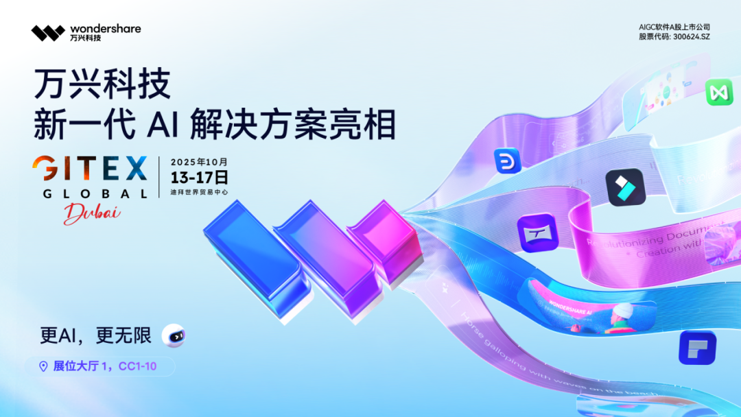 万兴科技将借助GITEX GLOBAL这一全球顶级展会,全面展示公司最新AI技术和解决方案,与全球生态伙伴展开深度对话,共同探索AI的无限可能性,携手迈向开放、智能、共赢的数字创意新未来!