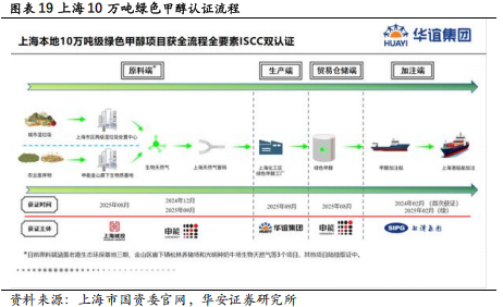 公司在上海化工区建设 10 万吨/年绿色甲醇项目,利用城市湿垃圾、畜禽粪污产生的生物天然气为原料,项目于 2025 年 1 月 2 日在上海化工区开工,预计2025 年 12 月底实现中交。项目与上海市属各国企深度合作,根据上海市国资委官网,由申能集团、上海城投集团、华谊集团和上港集团等四家市属国企共同推进的上海 10 万吨级绿色甲醇项目取得了原料供应、甲醇生产和贸易储运加注 ISCC EU与 PLUS 全流程双认证证书,平均碳排放强度相比化石燃料制备甲醇碳排放强度94 gCO2eq/MJ 平均减碳率 80%以上,能够满足上海港国际航运船舶对绿色燃料的加注需求,有力地推动和支撑上海国际航运中心建设。项目计划于 2026 年春节前完成上海本地绿色甲醇的上海港首单加注。