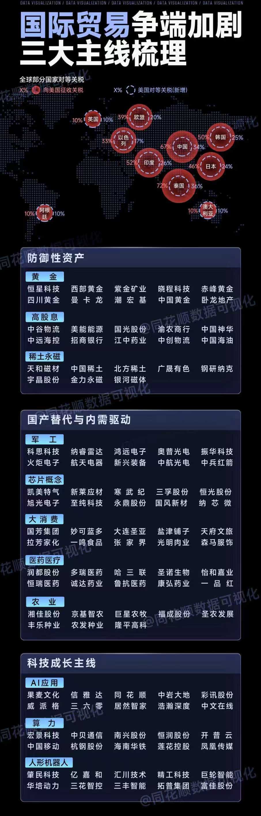 在此背景下,可梳理出三大主线供投资者参考。首先是防御性资产主线,涵盖黄金、高股息、稀土永磁板块;其次是国产替代与内需驱动主线,涉及军工、芯片概念、大消费、医药医疗等板块;最后是科技成长主线,包含AI应用、算力、人形机器人板块。