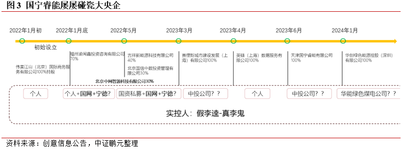 对手选择上:创意信息在川综能项目中对交易对手方(准客户、准供应商)的调查不到位,国宁睿能的央企背景存在较大疑虑,未能充分尽调其真实履约能力。创意信息称合同签订前通过查询公开信息得知,国宁睿能注册资本10亿,实缴资本3亿等方式确认了国宁睿能的履约能力。根据历史沿革,国宁睿能股权经历多次变更,注册成立后股权结构在自然人及多家央企体系间反复横跳,后续更是直接追溯到副部级中国投资有限责任公司,让人瞠目结舌。签订合同时实控人为自然人及北京中网智源科技有限公司(伪国网宁德背景),其业务开展及履约能力存疑。