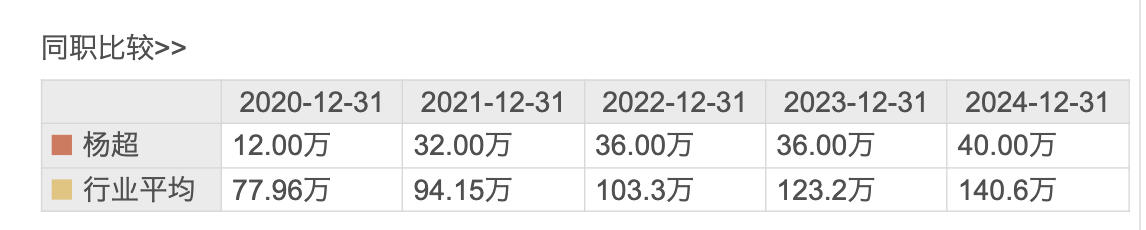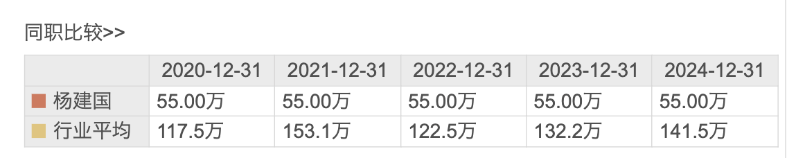 数据显示,2024年,杨建国薪酬为55万元,与上年相比保持不变;杨超薪酬为40万元,与上年相比增长4万元。