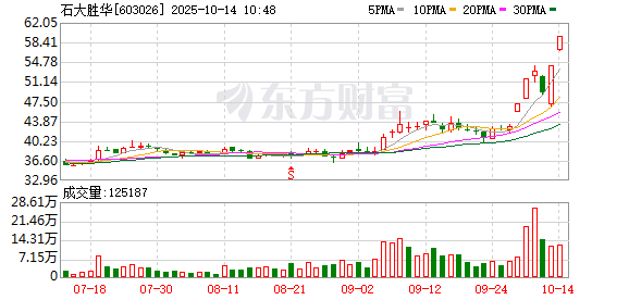 石大胜华再度涨停,6个交易日内录得4个涨停,累计涨幅为38.85%,累计换手率为45.51%。截至9:55,该股今日成交量1201.72万股,成交金额7.01亿元,换手率5.93%。最新A股总市值达138.32亿元,A股流通市值120.47亿元。