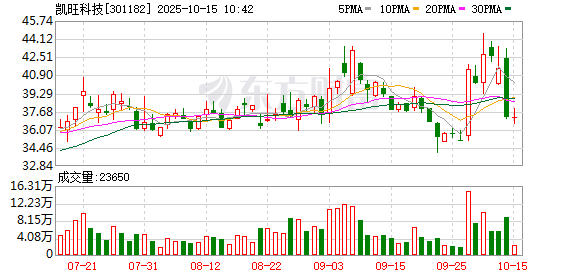 证券时报·数据宝统计,截至发稿,凯旺科技最新股价为37.25元,上涨0.27%,本期筹码集中以来股价累计下跌7.29%。具体到各交易日,2次上涨,3次下跌。