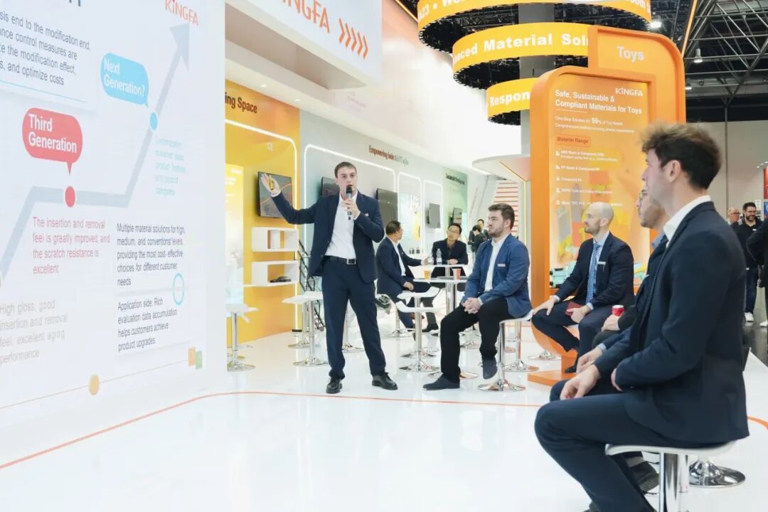 展会期间,金发科技举办的多场现场论坛座无虚席,行业专家与观众围绕前沿技术趋势进行了热烈探讨。连续两晚的Booth Party,则为全球伙伴提供了一个轻松愉快的交流平台,在觥筹交错间,友谊与合作得以升华。