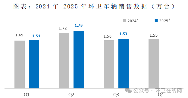 2025年前三季度,受益于超长期国债资金支持的大规模设备更新项目落地,国内环卫车辆市场呈现企稳回升的向好局面。根据中汽研的终端零售数据,前三季度行业累计销量为4.8万台,同比实现2.7%的增长。
