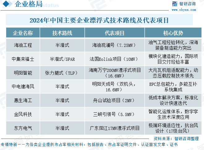 中国海上浮式基础平台行业正处于从技术示范向规模化商业应用过渡的关键阶段,企业竞争格局呈现“央企主导、民企专精、国际竞合”的特点。央企集团(如中海油、中电建、中船集团)凭借"海油观澜号"等示范项目掌握半潜式主流技术,并依托海洋工程积累加速商业化布局。民企龙头如明阳智能推出全球首台双机头漂浮式平台“明阳天成号”,在张力腿式(TLP)技术和混凝土浮体创新方面实现突破。亚星锚链、东方电缆等则在系泊系统和动态海缆等核心部件领域占据60%以上市场份额。国际企业如Principle Power通过技术合作参与中国市场。当前半潜式技术路线占比超60%,但中电建海风公司等正通过“启航企业”机制培育深远海施工等差异化竞争力,预计2025年后随着海南万宁等商业化项目落地,行业将进入规模化竞争新阶段。