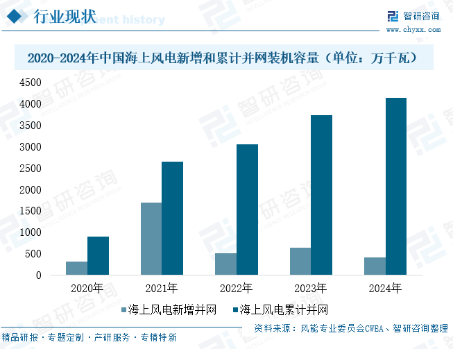 海上漂浮式基础平台的下游产业链涵盖了风电场开发、电力输出与运营维护等环节,是实现漂浮式风电商业价值的最终阶段。这一环节直接面向能源市场和电力用户,其发展水平决定了整个产业的商业化进程和可持续性。中国海上风电行业持续领跑全球,2024年新增并网容量达4.04GW,占全球新增市场的50.5%,连续第七年稳居全球新增装机首位;累计并网容量突破41.27GW,占全球海上风电总装机量的49.6%,连续第四年保持全球第一。这一强劲增长态势为海上浮式基础平台行业的发展提供了广阔空间,特别是在深远海风电领域,中国已成功投运首座深远海浮式风电平台"海油观澜号",并加速推进大兆瓦级漂浮式风电机组研发,进一步巩固了全球领先地位。随着海上风电向深远海拓展,漂浮式技术将成为未来行业发展的关键方向,预计到2030年中国海上风电总装机将达2亿千瓦,带动全产业链协同发展。