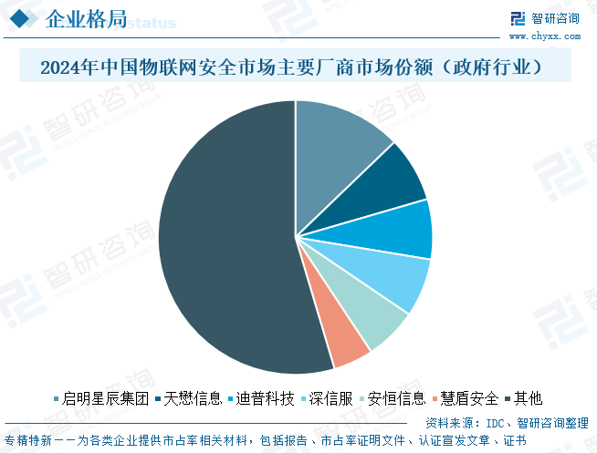 中国物联网安全行业呈现“整体分散、局部集中”的竞争特征。2024年,启明星辰集团、迪普科技、慧盾安全等头部企业在整体市场中合计占比不足20%,剩余75%由中小企业分割,市场碎片化显著。启明星辰以21.2%的市占率持续领跑边界安全市场,天懋信息在安全管理平台领域占据15.8%份额,万物安全则深耕政府行业斩获12.3%市场份额,形成“巨头主导赛道、专精特新卡位”的分层竞争格局。
