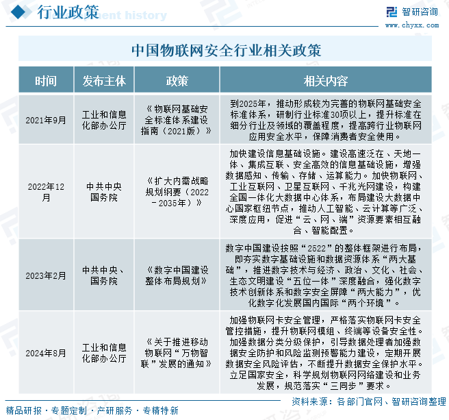 ●以上数据及信息可参考智研咨询(www.chyxx.com)发布的《中国物联网安全行业市场调查研究及发展前景规划报告》。