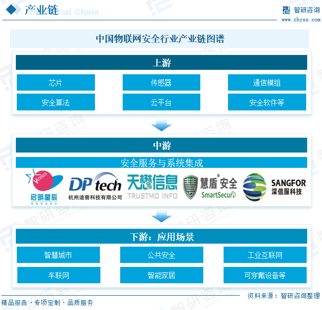 中国物联网安全行业产业链上中下游呈现“基础支撑-技术整合-场景赋能”的协同架构。上游聚焦基础资源与核心技术,涵盖传感器、芯片、通信模组等硬件供应商,以及操作系统、加密算法等基础软件开发商,该环节国产化率持续提升但高端芯片仍依赖进口;中游以安全服务与系统集成为核心,包括安全策略研究、工程认证、软件维护等服务提供商,以及平台层企业搭建的连接管理平台(CMP)、设备管理平台(DMP)等,该环节面临中小平台同质化竞争与跨平台互操作性挑战;下游面向终端用户与垂直行业应用,覆盖智慧城市、工业互联网、车联网等领域。整体来看,产业链利润向上游芯片、传感器及下游高附加值服务集中,中游则通过垂直行业定制化服务提升竞争力,未来随着6G、量子通信等技术商用,上下游协同将推动安全防护从“被动合规”转向“主动免疫”。