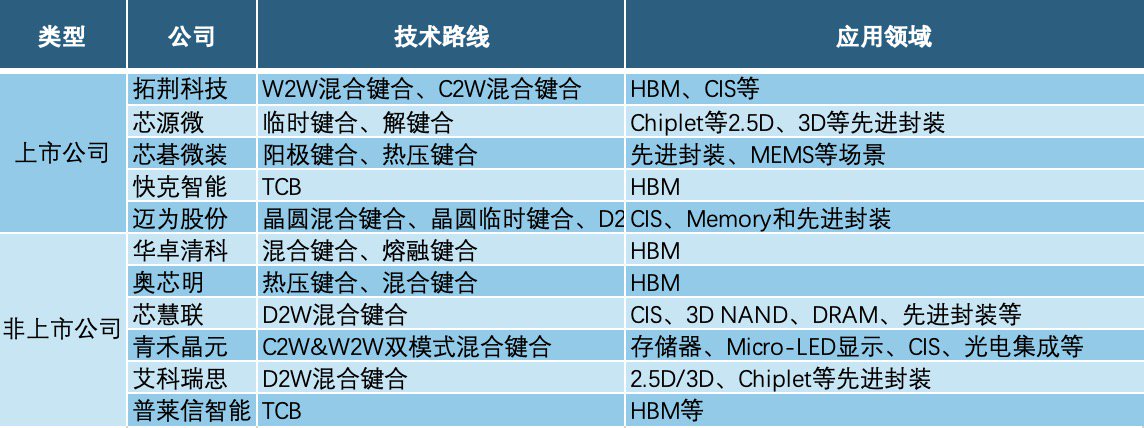 在键合设备领域,多家A股上市公司已实现从研发到订单落地的实质性进展,覆盖TCB、混合键合、临时键合等多条技术路线: