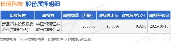 证券之星消息,长信科技(300088)10月17日公开信息显示,股东新疆润丰股权投资企业(有限合伙)向中国银河证券股份有限公司合计质押2300.0万股,占总股本0.92%。质押详情见下表: