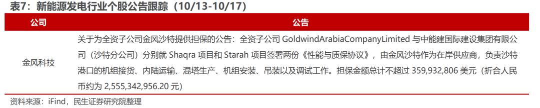 2)关注具备全球竞争力的零部件和主机厂等:振江股份、大金重工、明阳电气、日月股份、金风科技、明阳智能、三一重能等。