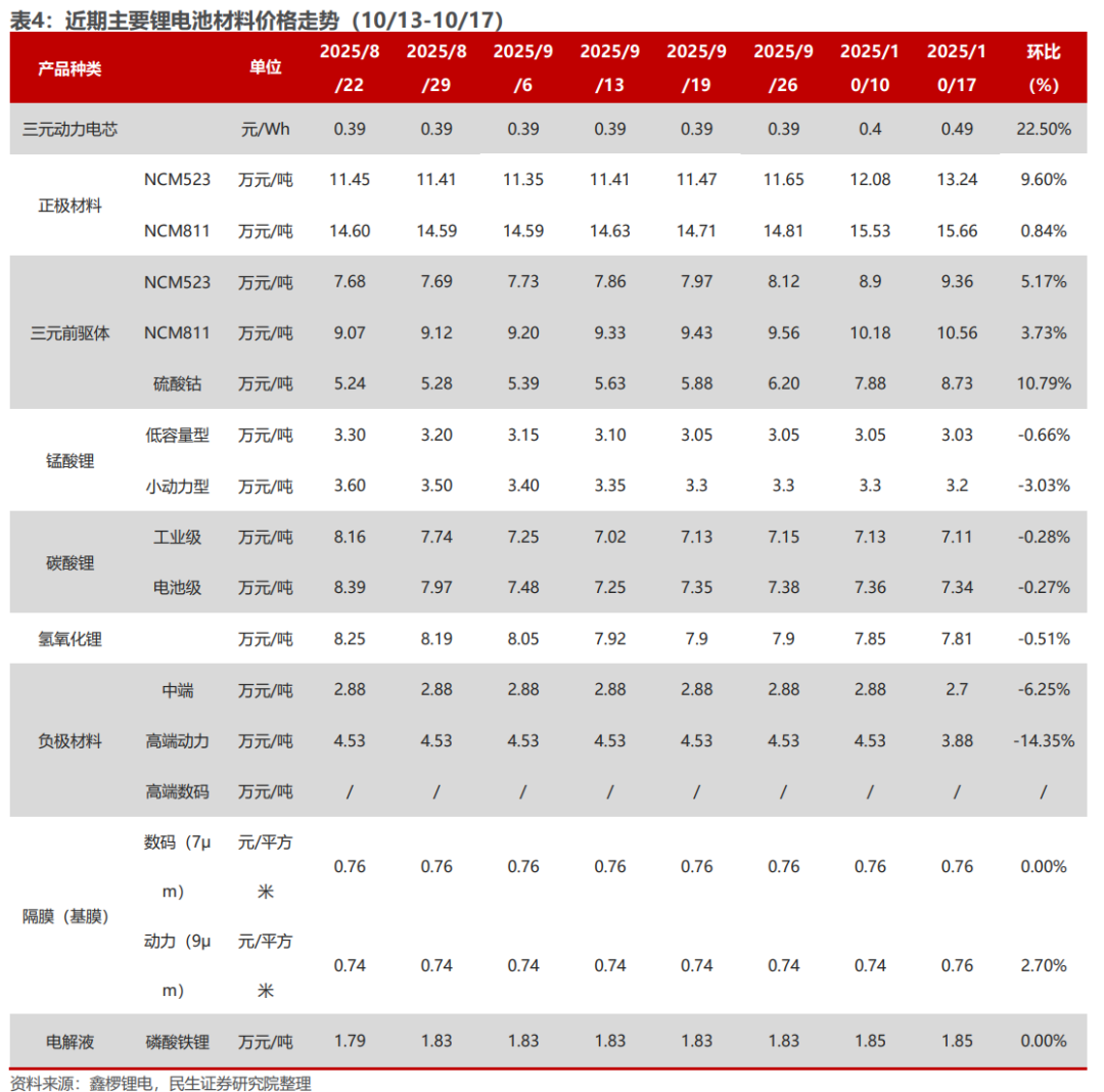 证券研究报告:固态电池斩获多项突破性进展,光伏产业链价格企稳【民生电新·周观察·20251019】