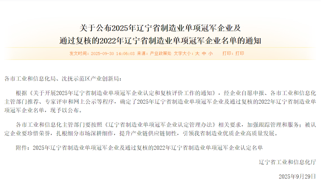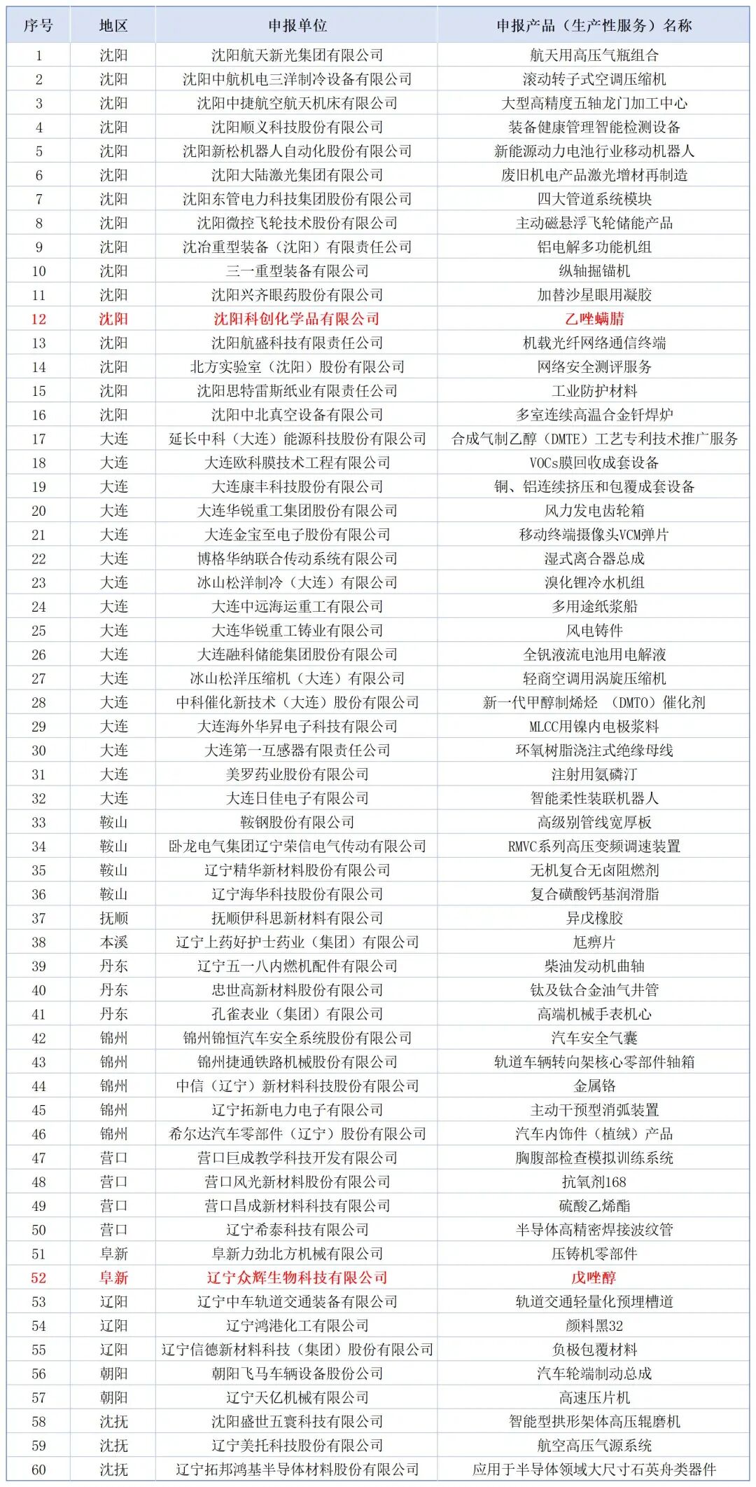 近日,辽宁省工信厅公布了2025年辽宁省制造业单项冠军企业名单,沈阳科创化学品有限公司产品乙唑螨腈和辽宁众辉生物科技有限公司产品戊唑醇光荣登榜。详细信息如下: