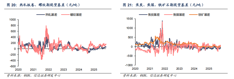 ⚫焦煤基差:截至10月17日,焦煤现货基差为35元/吨,周环比下降19.5元/吨。