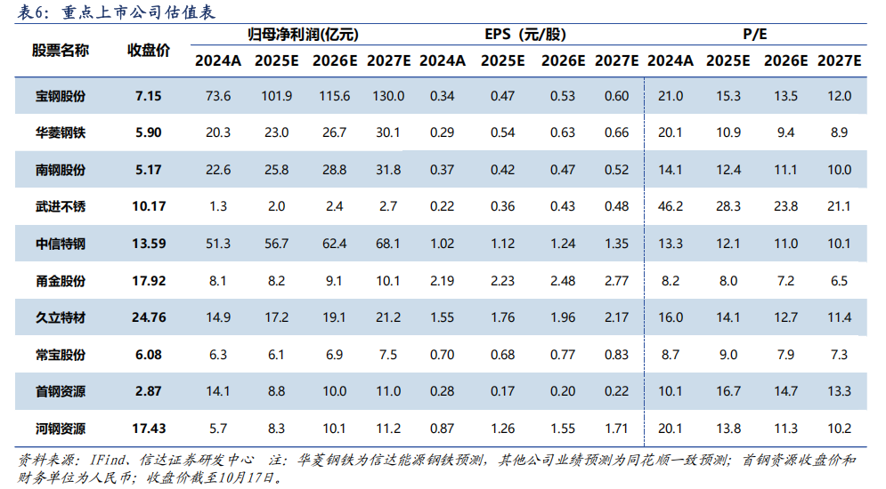 投资建议:虽然钢铁行业现阶段面临供需矛盾突出等困扰,行业利润整体下行,但伴随系列“稳增长”政策纵深推进,钢铁需求总量有望在房地产筑底企稳、基建投资稳中有增、制造业持续发展、钢铁出口高位等支撑下保持平稳或甚至边际略增,反观平控政策预期下钢铁供给总量趋紧且产业集中度持续趋强,钢铁行业供需总体形势有望维持平稳。与此同时,经济高质量发展和新质生产力宏观趋势下,特别是受益于能源周期、国产替代、高端装备制造的高壁垒高附加值的高端钢材有望充分受益。总体上,我们认为未来钢铁行业产业格局有望稳中趋好,叠加当前部分公司已经处于价值低估区域,现阶段仍具结构性投资机遇,尤其是拥有较高毛利率水平的优特钢企业和成本管控力度强、具备规模效应的龙头钢企,未来存在估值修复的机会,维持行业“看好”评级。建议关注:1)设备先进性高、环保水平优的区域性龙头企业山东钢铁、华菱钢铁、首钢股份、沙钢股份、三钢闽光等;2)布局整合重组、具备优异成长性的宝钢股份、南钢股份、马钢股份、新钢股份、鞍钢股份等;3)充分受益新一轮能源周期的优特钢企业中信特钢、久立特材、方大特钢、常宝股份、武进不锈、友发集团等;4)具备突出竞争优势的高壁垒上游原料供应企业首钢资源、河钢资源、方大炭素等。