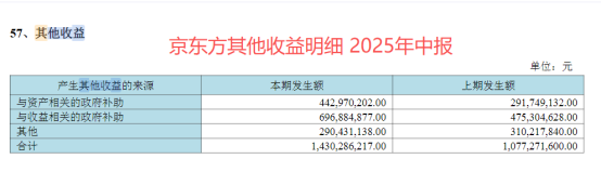 其他收益主要是指政府补助,2025年中报披露的其他收益达到了14.3亿元。