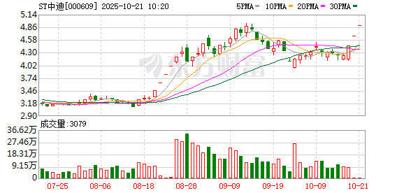 ST中迪(维权)盘中涨停,已连收3个涨停板,截至9:25,该股报4.90元,换手率0.07%,成交量19.49万股,成交金额95.50万元,涨停板封单金额为4.25亿元。连续涨停期间,该股累计上涨15.57%,累计换手率为3.17%。最新A股总市值达14.66亿元,A股流通市值14.26亿元。