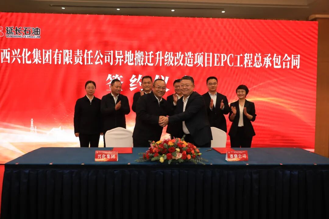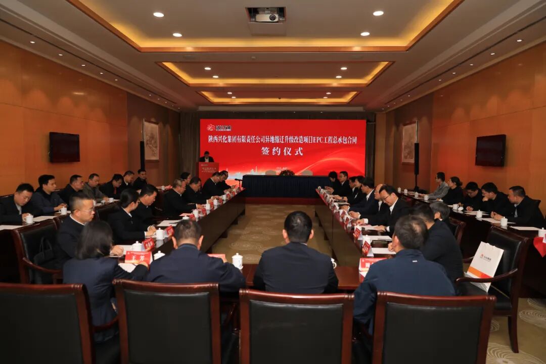 10月17日,陕西兴化集团有限责任公司异地搬迁升级改造项目EPC总承包合同签约仪式在西安举行。兴化集团党委书记、董事长韩磊,党委副书记、总经理石磊,党委委员、副总经理、兴化榆神公司执行董事、总经理杨延,赛鼎公司党委书记、董事长周恩利等领导专家共同出席签约仪式,共同见证这一重要时刻。