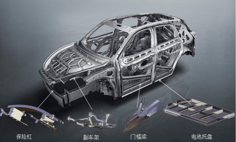 然而,需求仅是前提,铝材大规模应用的核心制约在于成本,而制造工艺的突破正是实现降本、从而破局的关键。特斯拉推动的一体化压铸技术成为重要转折,通过超大型压铸机将数十个冲压件、上百个焊点集成一次成型,显著简化生产流程、降低设备与人工成本,大幅提升了生产效率。这种生产工艺的革新,逐渐改变铝材成本昂贵的传统认知,使其在全生命周期成本核算中展现出竞争力。