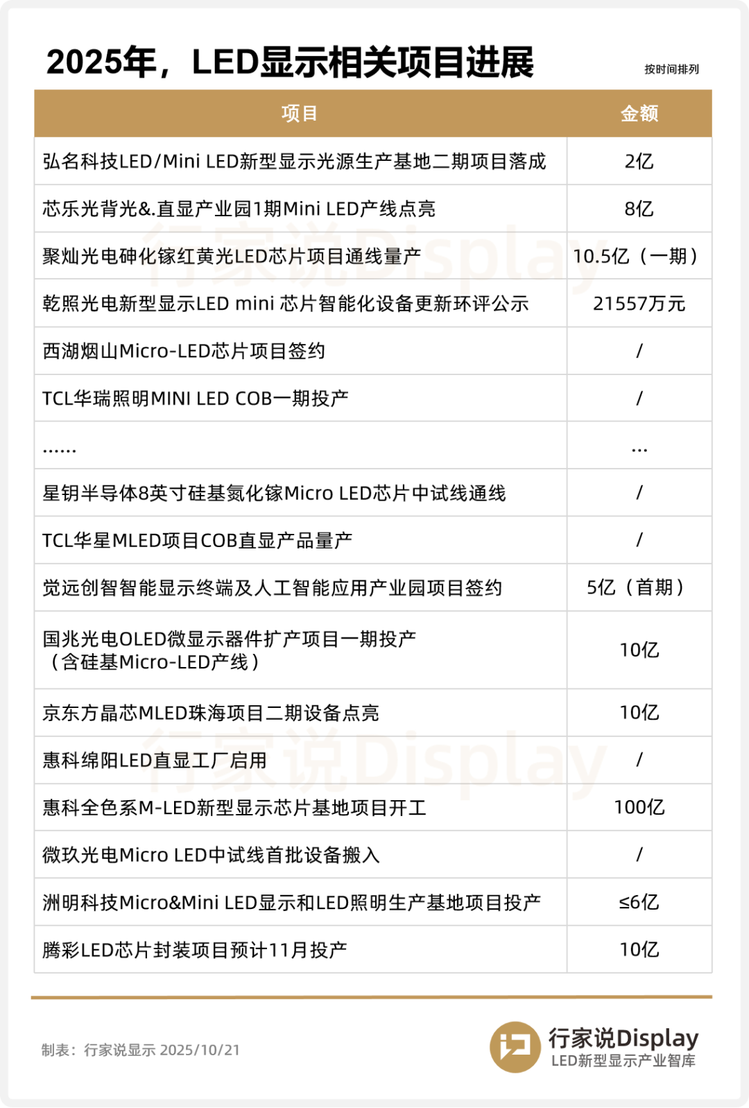 2025年以来,MLED显示领域投资建设热度持续攀升,尤其是Q3,多个项目进入投产、建设等新阶段。相关项目及进度如下: