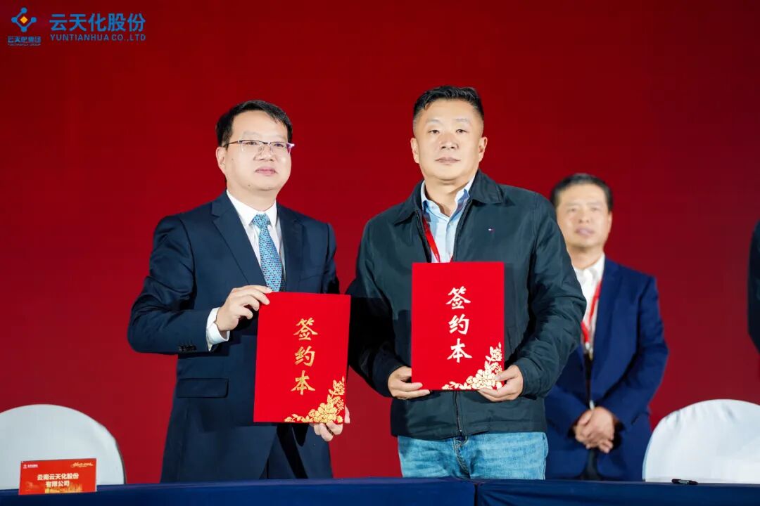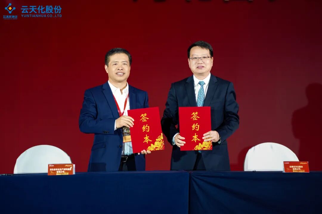 为保证国内化肥市场的供应稳定、供应链上下游顺利衔接,云天化邀请全国11家重点化肥保供企业作为经销商伙伴代表现场签订冬储春销的保供协议,其他合作伙伴大会后同步签订。郑重承诺,全力保证氮肥、磷肥、复合肥所有产品在冬储春销时节的稳定供应,凝聚行业合力,共同为持续推动农业绿色可持续发展,为保障国家粮食安全、为乡村全面振兴贡献力量!