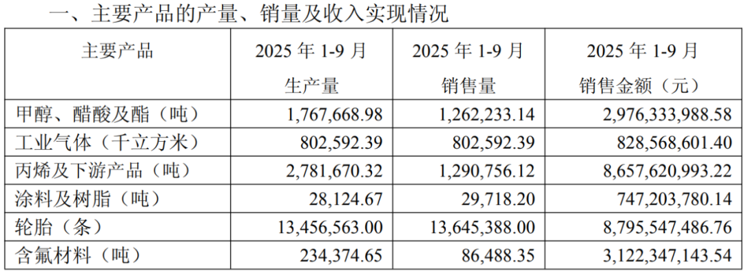 根据财报,2025年前三季度,华谊集团涂料及树脂生产量28,124.67吨,上年同期为31,693.67吨;销售量29,718.20吨,上年同期为30,816.78吨;实现销售收入7.472亿元,同比增长3.49%。此外,2025年前三季度,华谊集团涂料及树脂平均售价25,142.97元/吨,上年同期为23,429.59元/吨,同比增加7.31%。