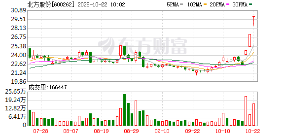 北方股份盘中涨停,已连收3个涨停板,截至9:25,该股报29.90元,换手率1.00%,成交量170.81万股,成交金额5107.22万元,连续涨停期间,该股累计上涨33.13%,累计换手率为19.02%。最新A股总市值达50.83亿元。