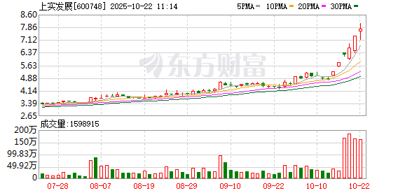 上实发展再度涨停,6个交易日内录得4个涨停,累计涨幅为69.18%,累计换手率为38.41%。截至9:57,该股今日成交量1.20亿股,成交金额9.24亿元,换手率6.52%。最新A股总市值达148.86亿元。