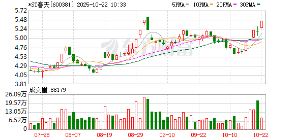 *ST春天(维权)再度涨停,5个交易日内录得3个涨停,累计涨幅为17.20%,累计换手率为11.20%。截至9:42,该股今日成交量587.11万股,成交金额3172.18万元,换手率1.00%。最新A股总市值达31.99亿元。