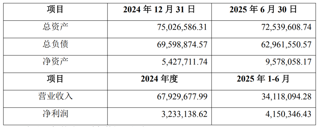 2024年泰亨光电审计营收6793万元,净利323万元;2025年上半年营收3412万元,净利415万元,已超去年全年水平。截至今年6月末,公司总资产7254万元,净资产958万元,总负债6296万元,资产负债率达86.8%。