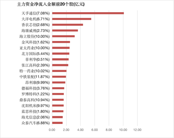 4.主力资金净流入居前20股