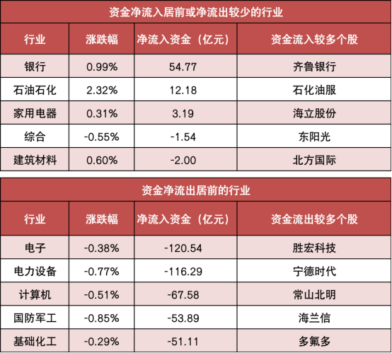 3.银行等行业实现净流入