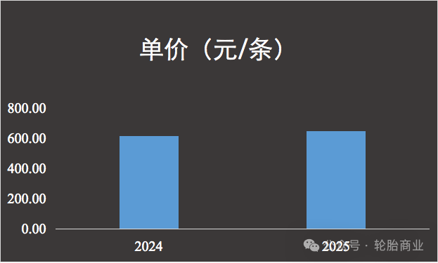 2025年前三季度,双钱轮胎的轮胎均价为每条645元,同比增长了5.23%。该均价属于中国上市轮胎企业中的较高价位。实际上,除了部分专注于全钢胎生产的轮胎企业,兼容了半钢胎和全钢胎业务的轮胎企业,产品均价多在300元到400元。