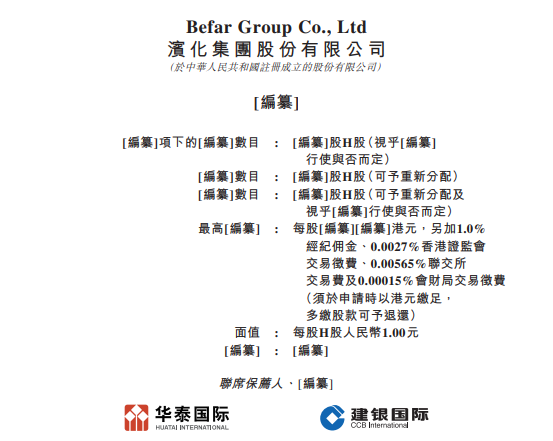 2025年10月22日,来自山东滨州滨城区的A股上市公司滨化集团股份股份有限公司Befar Group Co., Ltd(简称"滨化股份”)在港交所递交招股书,拟在香港主板挂牌上市。