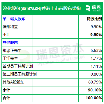 招股书显示,滨化股份在香港上市前的股东架构中,