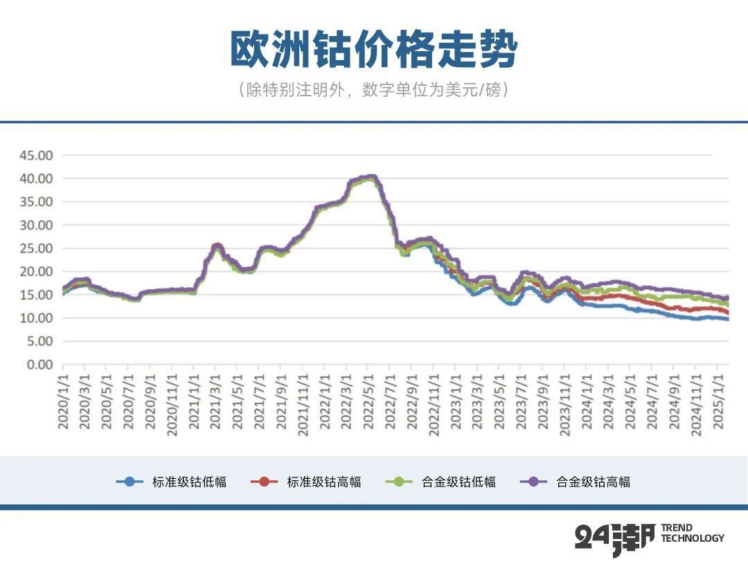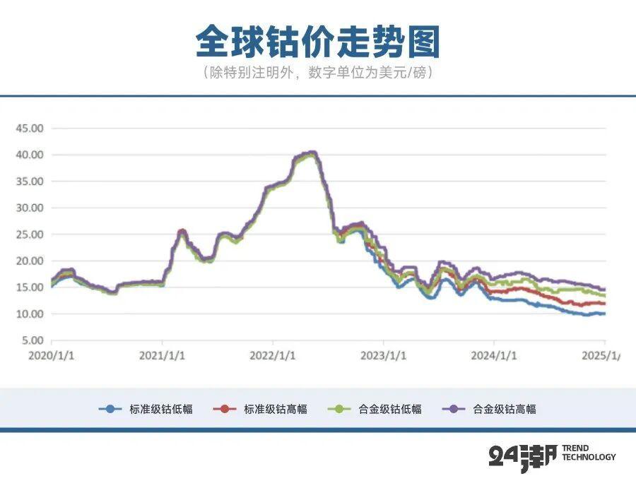 由于供应面的严重过剩以及需求的不景气带来了价格的暴跌,导致了钴金属的价格在2022年高点后一路走低。